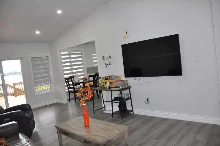 Experience year-round access with this custom-built 2 bedroom (MAIN FLOOR ONLY) waterfront ‘Royal Home’, recently renovated to perfection. Nestled on a spacious half-acre lot boasting 80 feet of frontage along serene Canal Lake, part of the Trent Severn Waterways. The main level features a spacious living room with a wood stove, cathedral ceiling, and access to a deck overlooking the water. The master bedroom offers a built-in closet, stunning water views, and French doors leading to a second bedroom. The main bathroom includes a separate shower. Finished basement available for at higher rent (IF INCLUDED IN THE LEASE) provides direct walkout access to the water, enhancing the home’s waterfront lifestyle. Additional features include an oversized single-car garage with an EV plug and loft storage, a drilled well, propane forced-air heating, and new A/C for comfort throughout the seasons. Located on a quiet cul-de-sac with minimal traffic, the property also boasts over 700 feet of newly built pressure-treated decking, providing ample space for outdoor relaxation and entertaining. A comprehensive water filtration system with UV protection ensures water quality. New appliances & window coverings at the time of renovations. This meticulously crafted waterfront retreat offers both tranquility and modern convenience, ideal for those seeking a premium living experience on the water.