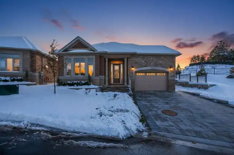 254 Ridge Way – Retire in Style – Welcome to the sought-after Degas model, thoughtfully upgraded with all the “I-Wants” for modern, low-maintenance living. Step into the gorgeous chef’s kitchen, featuring quartz countertops and backsplash, a 8’7″ centre island with box gables and a flush breakfast bar, pantry, pot lights, and premium finishes. The open-concept main floor is enhanced with hardwood flooring throughout. The great room is perfect for relaxing evenings, offering an inviting gas fireplace and elegant coffered ceilings. Your main-floor primary suite features coffered ceilings, a spacious walk-in closet, and a beautifully upgraded spa-style ensuite with a soaker tub, walk-in shower, and quartz counters. A main-floor laundry adds everyday convenience to this well-designed layout. The fully finished basement extends your living space with a large recreation room highlighted by a second gas fireplace and pot lights. Guests will appreciate a bright bedroom with large windows and a full upgraded bathroom nearby. A generous hobby room with double-door entry offers the perfect space for an office, craft room, or play area for the grandchildren. Enjoy outdoor living on your south-facing back deck, with the privacy of no direct rear neighbours. The oversized 1-car garage (15.5′ wide) provides excellent height for additional storage. Residents of Briar Hill enjoy access to a vibrant 16,000-sq.-ft. Community Centre offering daily activities, social gatherings, yoga/pilates classes, and more – pairing an active lifestyle with convenience. With lawn maintenance handled for you, embrace the ease and freedom of this desirable adult community. This never-occupied, move-in-ready bungalow is truly turnkey-designed for comfort, style, and simplified living.