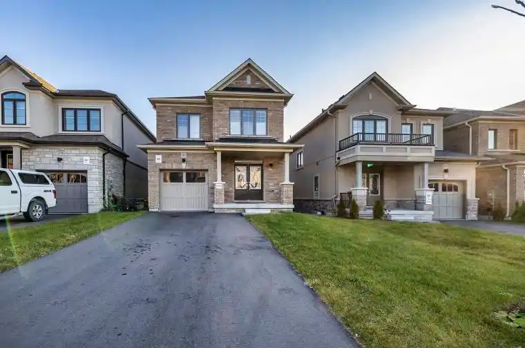 Welcome to this beautiful all-brick detached home in a family-friendly neighbourhood, offering style, comfort, and convenience. This spacious 3-bedroom, 2.5-bath property features no sidewalk, a grand double-door front entrance, and high ceilings that create a bright and open feel throughout.Step into a welcoming foyer with double-door entry, leading into the main living areas. A separate tile mud room with garage access and closets provides the perfect everyday drop zone for shoes, coats, and bags. The modern kitchen features quartz countertops, stainless steel appliances, and California shutters. It overlooks the open-concept living and dining areas, with pot lights for a warm, elegant ambiance.Upstairs, you’ll find three generous bedrooms. The primary suite includes a walk-in closet and a private ensuite. The second bedroom enjoys semi-ensuite access, shared with the third bedroom-ideal for families or guests. An upper-level laundry room adds everyday convenience.Located in a newer community close to parks, schools, shopping, transit, and major routes. Clean, modern, and move-in ready-this home is perfect for families seeking a well-maintained rental in Clarington’s growing east end.