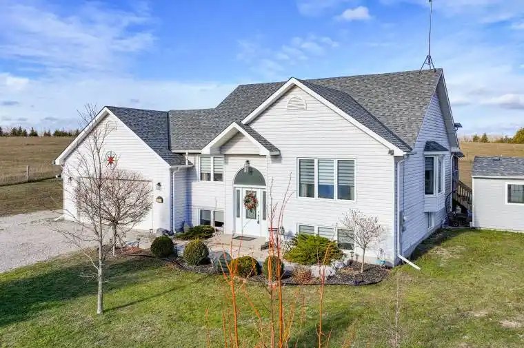 Welcome home to this beautifully crafted 5 bedroom, 3 bath raised bungalow set on a private 1.89-acre country lot. A large driveway and inviting entrance welcome you into this thoughtfully designed home. The open-concept main floor is perfect for modern living, featuring a bright chefs kitchen with pantry, coffee bar, and walkout to the back deck, seamlessly flowing into the dining and living areas. The grand primary suite offers its own private ensuite for comfort and relaxation. The finished lower level is ideal for family gatherings and entertaining, complete with a spacious rec room, full bar, three additional bedrooms, and a 3rd full bath. A combined laundry/utility space and convenient walk-up access to the attached garage add to the homes functionality. Step outside and enjoy evenings on the deck overlooking fields with no neighbours behind perfect for summer fun in the above-ground pool and watching picturesque sunsets. Bonus backyard spa oasis ready for relaxation. Centrally located just minutes from Lindsay and Peterborough, this property offers the best of country living with easy access to town amenities. Make this your next family home and start creating lasting memories here!