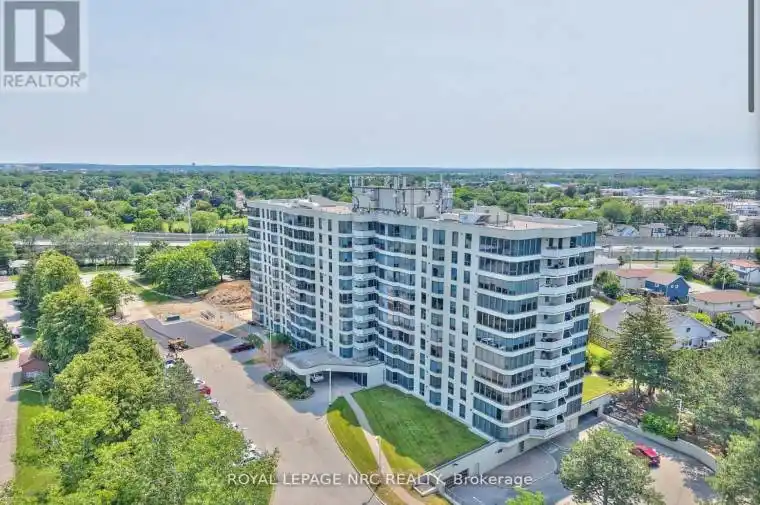 Welcome to one of the premier buildings in St. Catharines , Meadowvale Green 81 Scott Street. This wonderful one-bedroom, condo offers an easy and convenient lifestyle. This light-filled unit features a spacious, bright living room / dining area overlooking a park-like setting, well maintained kitchen, in-suite storage, laundry, and a spacious bedroom. Discover a serene lifestyle with meticulously landscaped grounds, a waterfall area, and outdoor heated saltwater pool. Plus, enjoy amenities like barbecue areas, picnic tables, and more. Perfect for retirees or professionals, the residence also features snooker, an exercise room, party room, guest suites, and ample parking options including underground parking.