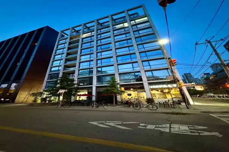Discover the charm of Prime King West with this north-facing one-bedroom unit. Embrace the fantastic open-concept layout, featuring exposed concrete, hardwood floors, and a modern kitchen equipped with stainless steel appliances, a Gas stove and quartz countertops. The bedroom invites you to unwind, comfortably accommodating a queen-sized bed. Step out onto the spacious balcony, which includes a gas hookup for a BBQ. Indulge in delicious meals or specialty coffee at the on-site Impact Kitchen, and take a stroll to St. Andrews Park, right next door. Living at the heart of the Entertainment District provides you with a vibrant array of outstanding restaurants, lounges, theatres, the Art Gallery of Ontario (AGO), Rogers Centre, Scotiabank Arena, and easy access to the TTC, all just a short walk away.