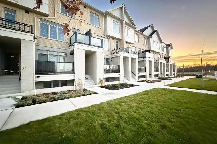 Brand-New, Never-Occupied special 3-bedroom, 3-full washroom townhome features a bright, open layout and extensively builder upgraded throughout. A modern kitchen offers upgraded sleek design details, while a spacious living area is enhanced by large windows bringing in abundant natural light. Conveniently placed balcony extends off the main floor. Oak staircases, smooth high ceilings on every floor, upgraded cabinetry, A/C, and Caesarstone countertops contribute to home’s polished look. Very large primary bedroom includes a large closet and a generous ensuite. Second bedroom offers large windows filling space with brightness. Second full washroom with a shower. Third bedroom also features an ensuite washroom with its own shower with glass doors. Property provides a private garage plus an additional driveway parking space-two parking spots in total. Two storage closets. Full appliance package is included: stainless steel fridge, stove, dishwasher, and in-suite washer and dryer. Garage is equipped with an automatic door opener, remote and wall control. This home is covered by a full Tarion warranty, offering peace of mind that’s hard to find in resale properties. The location is surrounded by everyday conveniences-close to health services, schools, fitness centres, restaurants, cafés, banks, and places of worship. Fast access to HWY 401 and HWY 407 makes commuting easy, and nearby marina and protected natural heritage area provide great recreational options. An ideal setting for families and anyone seeking a welcoming neighbourhood. HST is included in purchase price, subject to buyer’s eligibility for HST rebate. Don’t miss this outstanding opportunity!