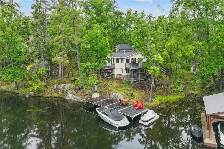 Seize the opportunity to own a stunning piece of Stony Lake! This beautiful half-acre property boasts mature trees, striking red granite, and an impressive 145 ft of shoreline. The charming four-season lake house offers 2 bedrooms, 2 bathrooms, a walkout basement, and a cozy insulated bunkie. Inside, the main floor features an open kitchen, living room, and dining area with patio doors that open onto a spacious deck, perfect for soaking in the breathtaking views of Stony Lake. Step outside and unwind on your expansive 14×40 aluminum dock, ideal for enjoying all the outdoor activities the lake has to offer. Don’t miss your chance to own your very own slice of paradise on Stony Lake!