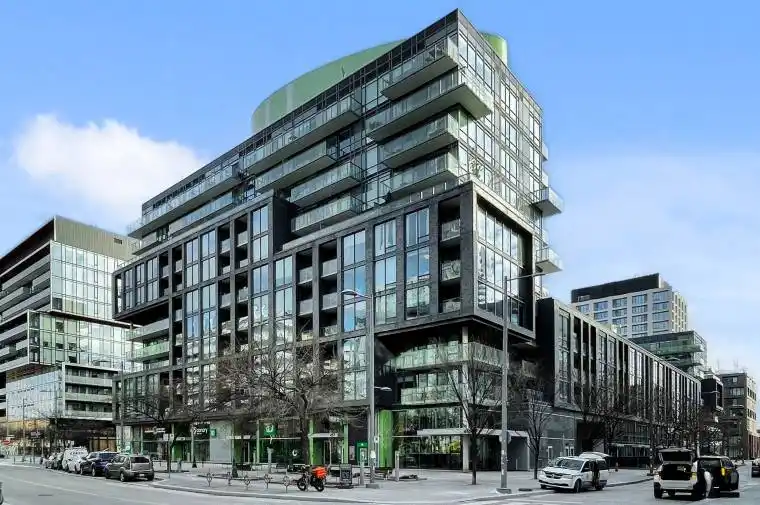Stunning 1-bedroom + den, 2-bath suite in the heart of the Canary District. This bright, modern home features floor-to-ceiling windows, 9 ft ceilings, hardwood throughout, a walk-in closet in the primary bedroom, and a private balcony perfect for morning coffee or evening wind-downs. The open-concept kitchen is both stylish and functional, offering built-in stainless steel appliances, and custom cabinetry-ideal for cooking and entertaining. Thoughtfully designed with spacious rooms, well-appointed bathrooms, and true move-in readiness. Includes unlimited high-speed Beanfield internet for complete downtown convenience. Residents enjoy exceptional amenities: a full fitness centre, rooftop terrace, games room, party room, bike storage, and guest suites. Steps to TTC, restaurants, shops, cafés, parks, and a vibrant community atmosphere. The Canary District offers unmatched access to the Cooper Koo YMCA, Corktown Common, scenic trails, and nearby Leslieville and the Distillery District. Perfect for professionals, fitness lovers, and anyone seeking a modern, connected Toronto lifestyle. Select photos have been virtually staged to showcase the potential of the space.