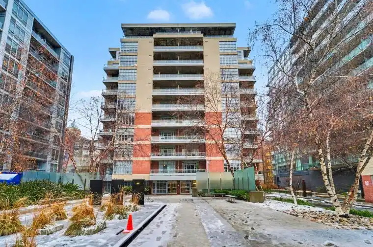 Spacious 1+Den lift at Quad Lofts featuring 10 Ft concrete ceilings, modern finished and bright NW courtyard views. Sleek Kitchen with gas cooktop and ample storage. Open-concept living/dining ideal for entertaining. Generous den perfect for a home office or guest room. Primary bedroom with walk-in closet and sliding barn doors. Parking included. A quiet boutique building steps to Waterworks Food Hall and King West shops & Transit.