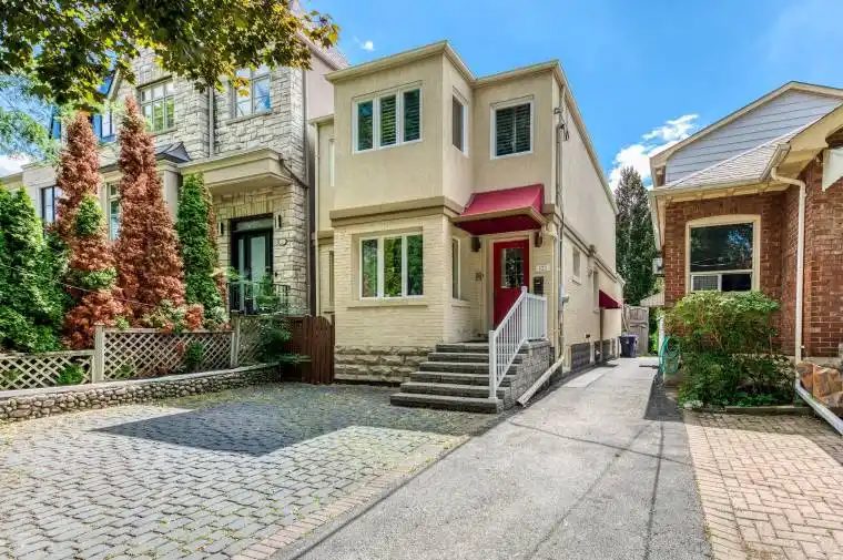 *John Wanless, Glenview, and Lawrence Park school catchments* Newly updated contemporary and timeless family sized home with beautiful curb appeal on coveted Melrose Ave. Steps from Yonge/Avenue & Lawrence. Meticulously maintained, freshly painted, wonderful layout with an abundance of natural light in each room. All new bathrooms, basement & 2nd level flooring! Open concept living and dining room with hardwood floors, pot lights and 2 pc powder room. Sun-filled kitchen with stylish backsplash, quartz counters, centre island, ample counter/prep-space, tons of storage and vaulted ceiling. An open family room that is combined with the kitchen features built-ins and overlooks a gorgeous, fully fenced and landscaped backyard with large deck, in-ground pool, mature trees and garden. Upstairs, you’ll find a large skylight, newly installed hardwood floors, three spacious bedrooms and two brand new full bathrooms. The primary bedroom features a walk-in closet, sitting area and ensuite bath. Finished basement with all new vinyl plank flooring, new 3pc bath, 4th bedroom with built-ins, recreation room and spacious laundry room. European style cobblestone landscaping at the front with parking for one vehicle. Plenty of storage inside the home, as well as clever backyard storage.