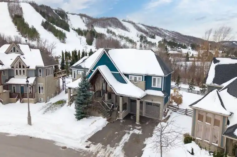 A rare opportunity to own one of the few true ski-in/ski-out family homes in the prestigious Orchard community, 173 National Drive is being offered for the first time in nearly 20 years. Set on the largest lot in the development, this exceptional reverse pie-shaped property offers over 150 ft of direct frontage backing onto Craigleith Ski Club, capturing uninterrupted views of the slopes and escarpment in every season. Thoughtfully positioned for privacy, the home delivers a true alpine setting designed for four-season family living. Just steps from the V-Hill chair, mornings begin with effortless first tracks while the ability to ski home for lunch makes family days on the hill easy and flexible. The club shuttle at the doorstep simplifies après-ski, lessons, and events, and direct access to private year-round trails encourages outdoor adventure beyond winter. Inside, the sought-after Panorama model features a dramatic Normerica great room with soaring ceilings and upgraded windows that frame the mountain views. Warm pine trim, upgraded oak hardwood flooring, and custom finishes create the timeless feel of a luxury ski chalet. The home offers five bedrooms and four bathrooms, including a private primary retreat, along with two spacious family rooms providing ample space for children, guests, and multigenerational gatherings. The finished lower level is set up as a games and recreation room, ideal for evenings after the slopes. Recent improvements include new appliances installed in December 2025, and the seller will refinish the hardwood flooring prior to closing upon request. Residents enjoy exclusive access to Orchard amenities including pool, tennis, and pickleball courts just steps from the backyard. Whether as a full-time residence or a cherished weekend retreat, this is a truly irreplaceable family ski chalet offering.