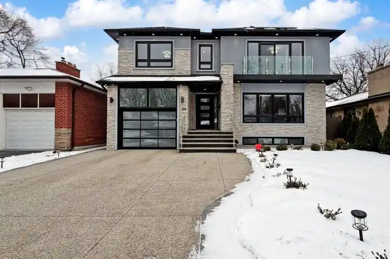 Welcome to 129 Meadowbank Rd – a stunning custom-built executive home offering exceptional space, luxury finishes, and unmatched functionality in Toronto’s sought-after Etobicoke Centre neighbourhood. Offering approximately 3,400 sq ft above grade plus 1,100+ sq ft of finished lower level (~4,500 sq ft total), this home is designed for families, professionals, and multi-generational living. Featuring 6 washrooms and 4 spacious bedrooms with private en-suites (including one with a balcony), the layout delivers comfort and privacy at every level. The show-stopping primary retreat includes a large walk-in closet with an island and LED lighting for a modern, elevated feel. A dramatic main-floor office/den with soaring 16-ft ceilings offers the perfect work-from-home setup and can easily function as a 5th bedroom. Second-floor laundry adds everyday convenience right where you need it most. Entertain in formal living and dining spaces, unwind in the family room, and enjoy a chef-inspired kitchen with a 10-ft island, oversized fridge, double wall ovens, and a pantry with sink, plus a dedicated coffee bar, a hot-water pot filler over the stove, and a showpiece wine wall.The finished lower level includes a large recreation room and a separate in-law/rental suite with its own entrance – ideal for extended family or income potential – plus the added convenience of a second laundry in the basement. Outside, enjoy a beautifully upgraded property with an exposed concrete driveway and walkways wrapping the home, patios/deck, interlock garden beds, exterior pot lights around the house, and a security camera system. Bonus: a 22kWh solar system that helps significantly reduce electricity costs, a heat pump for efficient year-round comfort, plus a heated tandem double garage with EV charger. Convenient access to highways, transit, shopping, and schools – this is the complete package.