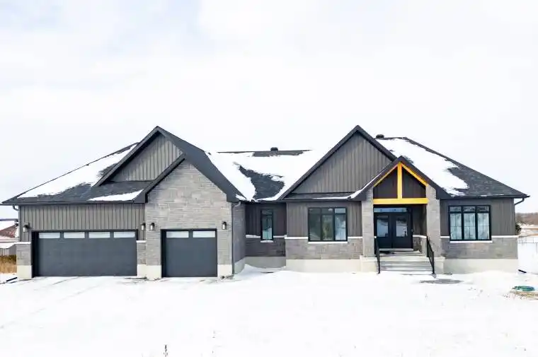Experience the pinnacle of sophisticated living in this 2025-built architectural masterpiece, perfectly situated on an expansive 0.75-acre lot within the prestigious Russell Ridge Estates. Boasting over $235,000 in premium upgrades, this “Country Modern” raised bungalow offers a seamless blend of luxury and functionality, featuring a 3-bedroom plus den layout and 4 exquisite bathrooms, including a convenient 2.5-bath configuration on the main level. The grand interior is defined by soaring 9-foot, cathedral, and tray ceilings, complemented by a carpet-free environment adorned with upgraded 24×24 designer tiles throughout. At the heart of the home lies a true Chef’s Kitchen with built-in professional-grade appliances and quartz countertops, flowing into a living area anchored by a cozy gas fireplace. Transitioning from the main living space is a magnificent, oversized sunroom, offering a serene, light-filled sanctuary to enjoy breathtaking views of your estate. The primary sanctuary is a masterclass in comfort, offering a walk-in closet and a spa-like ensuite featuring a freestanding tub and glass shower. The partially finished walk-out basement (9feet height-Upgrade) adds incredible value, already featuring a completed full bathroom and a separate patio entrance, offering immense potential for an in-law suite or expanded living space. With a 3-car garage (9 total parking spots) and Energy Star Certification, this home ensures high efficiency without compromising on style. Located just 5 minutes from Russel Town and 25 minutes from downtown Ottawa and backed by a Tarion Warranty, this property represents a rare opportunity for discerning buyers seeking almost brand-new, high-end estate with unparalleled modern comforts. Close proximity to Winchester Hospital (appx 15 min) Call Vardaan Sangar at 819.319.9286 for booking your next showing!