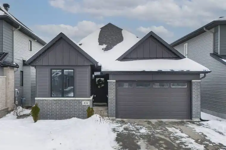 OPEN HOUSE Sunday, February 1, 2 to 4 pm – Welcome to 432 Gidran Circle, a beautifully appointed Cardel Capella 2 bungalow built in 2023, located in the highly desirable Blackstone community on the edge of South Kanata and Stittsville. Situated on a quiet street, this west facing 2+2 bedroom, 3-bathroom home offers lovely curb appeal, a thoughtful layout, and a private fully fenced backyard on a 37.99′ x 109.02′ lot. The open-concept main level features wide plank hardwood floors, high ceilings, custom blinds and curated light fixtures. The stunning kitchen with quartz countertops, stainless steel appliances, built-in microwave, walk-in pantry offers a seamless flow to the spacious great room with gas fireplace and abundant natural light. The primary bedroom is accessed through elegant double doors and includes a walk-in closet and a luxurious five-piece ensuite with dual vanities, walk-in shower with seat, separate water closet, and linen storage. A second main-level bedroom with walk-in closet, a full four-piece bath, and a convenient laundry/mudroom with garage access complete this level. The fully finished lower level offers luxury vinyl plank flooring, generous recreation space ideal for a home gym or office, two additional bedrooms, a three-piece bathroom with walk-in shower. There is ample unfinished space plus storage under the stairs. The double attached garage includes an EV charger, with parking for up to six vehicles total. Additional features include central vacuum, HRV, and automatic garage door openers, and Celebrite lights. The backyard is a true showpiece, featuring a 10′ x 20′ inground saltwater pool installed by Rideau Pools in September 2023, a crushed stone patio and BBQ area with fire table, a standing umbrella, and a 7′ x 7′ shed for pool equipment. A rare opportunity to own a turnkey bungalow with premium upgrades and exceptional outdoor living space!