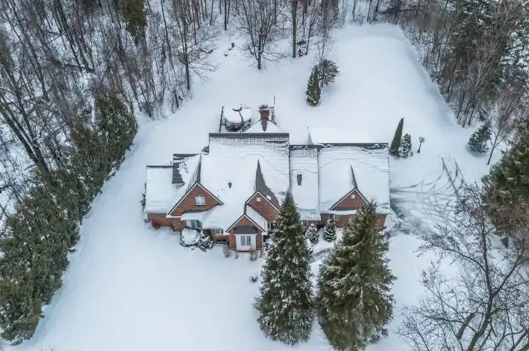 Country Estate! On a tranquil 1.25 acre lot. Custom built 4,000+ sq.ft. reclaimed brick residence with metal roof and triple garage. There are 5 bedrooms (each with an ensuite) and 7 bathrooms. This sprawling bungaloft has 2 master bedroom suites – one on the main floor and one upstairs. Gourmet kitchen and dinette overlook the picturesque grounds. Main floor also includes formal living and dining rooms, family room and library/office. Enclosed porch/ sunroom. Outdoor space includes a 900+ sq.ft. deck, gazebo and firepit. Huge workshop in basement plus hobby room. Good access to 401, Breslau airport, Guelph, Kitchener and Cambridge. Nature lovers welcome here!
