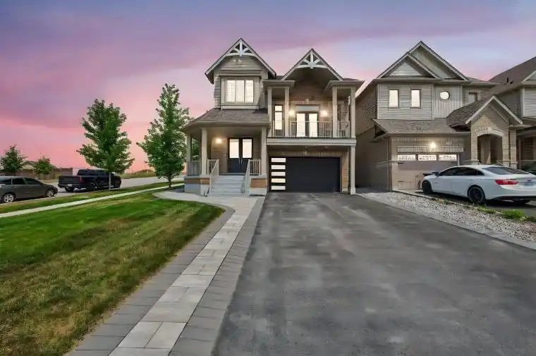Well maintained 3-bedroom, 3+1-bath detached home offering a comfortable layout and excellent privacy. The main floor features a spacious dining area, a family room with a gas fireplace, and a modern kitchen with quartz countertops, tile backsplash, and stainless steel appliances. Upstairs, a bright family room with 13-ft ceilings opens to a private balcony, creating a versatile space for relaxing or working from home. The primary bedroom includes his-and-hers closets and a 5-piece ensuite, while two additional bedrooms share a 4-piece bathroom. The finished basement provides additional living space with a recreation room, electric fireplace, 4-piece bathroom, and laundry. Enjoy the private backyard with interlock patio, gazebo, gas BBQ hookup, and custom shed. No neighbours to one side or behind. Stylish, well cared-for, and move-in ready.