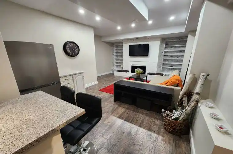 Welcome to this stunning, fully renovated legal walk out basement apartment located in the highly sought-after Lorne Park community. This bright and spacious 2-bedroom, 1-bathroom suite offers 9 foot ceilings, modern finishes and stylish furnishings-ready for you to move right in! Enjoy a brand new kitchen featuring elegant countertops, a sleek backsplash, and appliances. The open-concept living and kitchen area is enhanced with pot lights throughout and large windows that fill the space with natural light. Both bedrooms are generously sized, offering comfort and privacy. The beautifully updated bathroom features modern fixtures and high-quality finishes. Located just minutes from Jack Darling Memorial Park, you’ll have easy access to the beach, off-leash dog park, picnic areas, excellent schools nearby and scenic bike trails. Enjoy the vibrant lifestyle of nearby Port Credit, with its waterfront marina, shops, and restaurants. Conveniently close to Clarkson GO Station, QEW, and Highway 403, commuting is a breeze.