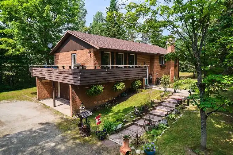 Solid brick split level home resting on a 2 acre lot in the village of Novar. This 3 plus 1 bedroom home with 2 piece ensuite offers a spacious and bright main level with large kitchen and hardwood flooring and walkout to a beautiful deck overlooking the treed yard. The screened Muskoka room provides a haven from the bugs and is a great place to relax and unwind. The lower level provides a cozy family room with fireplace, tons of storage and access to the attached double garage for convenience. This space would be well set up if one wanted to create an in-law suite with the second entrance option available. A ravine lot, tons of privacy is afforded with big trees and a level lot great for use and enjoyment. Located just minutes off highway 11, this is the gateway to the North but with easy access to Huntsville, being about 10 minutes away. All the daily amenities are available within minutes in Novar with grocery, mail and LCBO. A beautiful area rife with recreational opportunities with endless lakes nearby, tons of wildlife, trails for snowmobile and ATV and a great small community feel. This is a well-built home with a great layout and is awaiting the next family to update to taste and accentuate all the wonderful features.