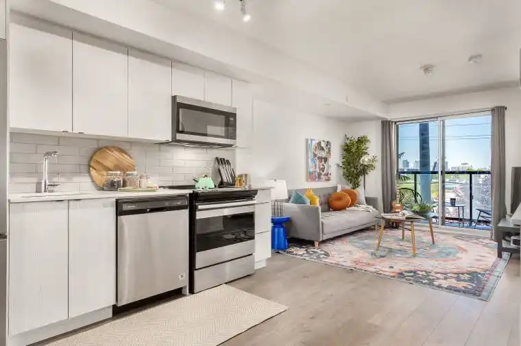 Discover contemporary comfort in this bright and spacious 665 SF 1-bedroom + den, 2-bath condo at The Lanes, a stylish, well-managed building in East York’s sought-after Topham neighbourhood. Tucked away from the hustle of downtown yet exceptionally well connected, this location offers a peaceful, residential atmosphere with an easy commute to the city core.The open-concept layout is filled with natural light from expansive west-facing windows, showcasing beautiful sunset views. The sleek kitchen features quartz countertops, stainless steel appliances, and modern finishes designed for both style and function. The spacious primary bedroom includes a large closet and a refined 4-piece ensuite with a glass-enclosed shower and backlit heated mirrors. A versatile den provides the perfect space for a home office, creative studio, or guest area. Residents enjoy premium amenities including concierge service, the Strike Club social lounge, Sky Deck Rooftop Lounge with panoramic views, and the Skyview Fitness Centre. Step outside to a vibrant, walkable neighbourhood with local cafés, shops, and nearby green spaces such as Topham, Warner, and Edge Parks. Whether commuting downtown in under 30 minutes, exploring ravines, or heading to the Beach for a weekend escape, this home offers the ideal balance of convenience, comfort, and community.