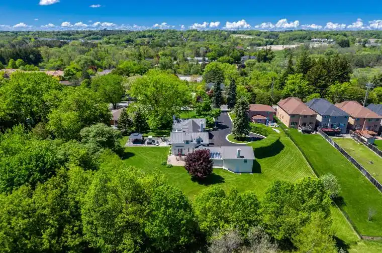 Nestled on over an acre within Old Aurora, the Thomas Pargeter house seamlessly blends the past with thoughtful updating. This property offers a lifestyle of what feels like rural living and tranquility just seconds from both St Andrew’s and St. Anne’s. Inside, original details have been meticulously preserved. The spacious principal rooms flow effortlessly, perfect for entertaining or intimate family gatherings. Light spills in every room and is especially noted in the dining room with a walk-out to a quiet terrace. Imagine cozy evenings by the fireplace, or sun-drenched mornings overlooking the gardens or coupled swans on McKenzie Marsh. The primary suite includes two closets and a fabulous spa bathroom found behind an original blue barn door. Adjacent to the main residence, a truly unique feature awaits: a fascinating historic bunker. This intriguing 1000 sq ft+ space offers endless possibilities a private wine cellar, an artist’s studio, a secure storage facility, or perhaps a one-of-a-kind entertainment area. A recently built garden barn is perfect for the lawn tractor or summer furniture storage. Metal roof installed in 2024. Smart home ready. Located in a quiet Aurora neighbourhood, you’ll enjoy the perfect balance of rural tranquility and urban convenience. This is more than a home; it’s a legacy. Don’t miss this rare opportunity to own a piece of Aurora’s history, beautifully reimagined for today’s discerning buyer. Used to have commercial zoning. A perfect floor plan for a professional office. Many possibilities here.