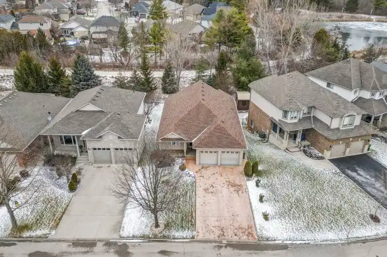 Meticulous bungalow , nestled in the desirable community of Lake Margaret, set on a beautiful mature treed lot offering privacy and charm. This well-maintained 2+2 bedroom bungalow offers approximately 1,416 sq ft above grade plus an approximately 900 sq ft of finished living space in the bright walk-out lower level with potential for a granny flat or in-law suite. The main floor features cathedral ceilings in the living room with a stunning view from the windows, fireplace, widened hallways, hardwood and ceramic flooring, and an inviting eat-in kitchen with two-tone cabinetry. The spacious primary bedroom includes a walk-in closet. A large 5-piece main bath, an additional upper bedroom, a 2-piece guest bath, and a convenient main-floor laundry room. The lower level boasts a walk-out basement, filled with natural light, offering two additional bedrooms, a full bathroom, large rec room with gas fireplace, mini serving area, surround sound, built-in speakers, ample storage, a cold room, and storage under the stairs. Outdoor living is a highlight with three outdoor sitting areas, including a composite deck (5 years old) with deck lighting, a concrete lower patio, and a partially fenced yard. Additional features include a concrete driveway, double car garage, sprinkler system, tinted windows, central vacuum, wired security system, sump pump, rented hot water heater, 125-amp service, and extra insulation in the basement. Updates include a roof approximately 5 years old. This home offers exceptional space, functionality, and comfort in a sought-after neighbourhood-perfect for families or downsizers seeking quality and versatility