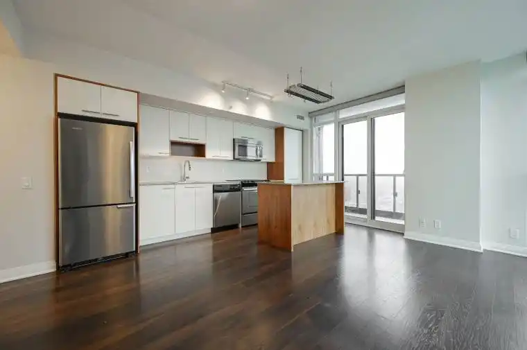 Your Corner of Calm at Valhalla. This spacious, rent-controlled 1-bedroom + den corner unit offers 678 sqft of elevated living in the heart of Central Etobicoke. Surrounded by floor-to-ceiling windows, this well-maintained suite offers a warm and inviting atmosphere from the moment you arrive. The kitchen features a centre island, pantry and ample prep space, while the primary bedroom includes a walk-in closet, linen closet, and built-in IKEA Pax dresser for exceptional storage. The separate den, complete with a custom built-in desk and couch with storage, provides the perfect work-from-home setup or reading nook. The suite has been professionally painted and cleaned throughout, ensuring a truly fresh start for new tenants. With generous closet space, parking and locker included, and bright corner exposure, this home offers the perfect blend of comfort and convenience. Enjoy access to impressive building amenities including multiple fitness centres, pool, sauna, rooftop patio, and concierge. Ideally situated near major highways, transit, and everyday conveniences, with Loblaws just a short walk away, Suite 2110 places you right where you want to be – connected and completely at ease.