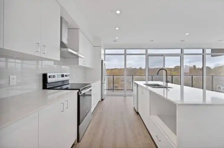 Rare two-bedroom corner unit in the highly sought-after Gaslight District! Located in the heart of historic downtown Galt, this beautifully designed two-bedroom, two-bathroom condo offers a perfect mix of modern comfort and urban lifestyle. The vibrant Gaslight District brings together residential living, local shops, dining, and culture – all just steps from your door. Inside, you’ll find nine-foot painted ceilings, wide plank flooring, and quality finishes throughout. The modern kitchen is both stylish and practical, featuring ample cabinetry, quartz countertops, a tile backsplash, and an oversized island with an undermount sink and gooseneck faucet. Stainless steel appliances complete the space, making it ideal for everyday living and entertaining alike. The open-concept layout flows seamlessly into the living and dining areas, while floor-to-ceiling windows and a spacious balcony fill the home with natural light. The primary bedroom offers a relaxing retreat with generous closet space, sliding glass doors to the balcony, and a spa-inspired four-piece ensuite with dual sinks and a walk-in shower. A second well-sized bedroom with large windows, a full bathroom with a tub and shower combination, and convenient in-suite laundry round out this impressive unit. Residents of the Gaslight District enjoy exceptional amenities, including a welcoming lobby with seating, secure video-monitored entry, a fully equipped fitness centre with yoga and Pilates studios, and a games room with billiards, ping-pong, and a large-screen TV. Additional spaces include a catering kitchen, private dining room, reading lounge with library, and an expansive outdoor terrace featuring seating areas, pergolas, fire pits, and barbecue stations. This is a fantastic opportunity to enjoy modern condo living in one of Cambridge’s most exciting and evolving communities.