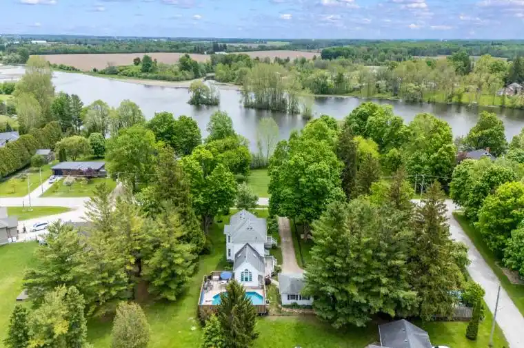 Step back in time and embrace the elegance of this stunning Victorian-style two-story home located in a picturesque setting directly across from the serene Maitland River. Boasting timeless charm and modern comforts, this home offers a lifestyle of both luxury and tranquility. Complete with 4 spacious bedrooms to allow for your family to grow, and for guests to stay and make endless memories for years to come. The main floor boasts a generously sized living and formal dining area, as well as a spacious kitchen with ample countertop and cabinetry space all featuring high ceilings, intricate crown moldings, and large floor to ceiling windows that flood the rooms with natural light. The large fenced in yard, private swimming pool with diving board, wrap around deck and privacy fence provide the ideal spaces for relaxing afternoons or entertaining family & friends. Nestled across from the scenic Maitland River, enjoy peaceful views, the local harbour for swimming and boating, walking trails and an abundance of natural beauty just steps from your front door. The private driveway and detached 2 car garage provide additional storage and ample space to park or work on your toys. This home offers the perfect blend of historic elegance and modern amenities in an stunning riverview setting. This home provides the feel and comfort of one you would read about in story books. Call Your REALTOR Today To View What Could Be Your Little Slice of Paradise & History and to not miss the opportunity to make this dream home your reality!