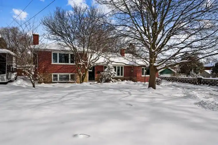 Family living at its finest, ideally located just moments from Downtown Cobourg and the shores of Lake Ontario, set on a large lot with a true backyard oasis and private pool area. The bright, sun-soaked front living room features bay windows, a cozy fireplace, built-in shelving, and a carpet-free layout. A generously sized dining room is perfect for hosting large gatherings, offering multiple windows and classic chair rail mouldings. The eat-in kitchen provides ample cabinetry, a tile backsplash, recessed lighting, and island prep space. An informal dining area includes a built-in corner cabinet and a walkout to the back deck, ideal for effortless entertaining. The main floor also offers a well-appointed bedroom or flexible office space. Upstairs, two spacious bedrooms are complemented by a full bathroom. The lower level features a sunny rec room with a charming brick-surround fireplace, a bathroom, and a dedicated laundry room. A spacious deck extends the living space outdoors, overlooking a sprawling backyard framed by mature trees and lush greenery. The private pool area impresses with a large pool, waterslide, and pool house, creating the ultimate summer retreat. All just minutes to amenities, downtown shops, restaurants, Cobourg Beach, and easy access to the 401.