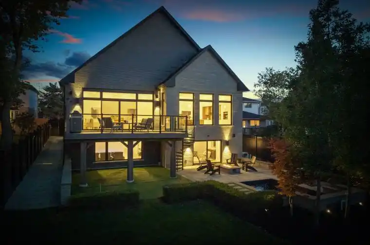 Welcome to an extraordinary custom-built estate offering over 4,000 square feet of luxurious living space on a meticulously landscaped 1.35-acre lot. Originally built in 2018 and enhanced with hundreds of thousands in recent high-end renovations, this home is a flawless blend of sophistication, comfort, and modern design. From the moment you arrive, you’ll be captivated by the grand covered porch, new fluted glass entryway, and stunning curb appeal. Inside, soaring vaulted and coffered ceilings, detailed crown moulding, and expansive floor-to-ceiling windows fill the home with light and elegance. The main floor showcases a modern luxury kitchen complete with a massive center island, wall oven, cooktop, pot filler, and coffee bar, all overlooking the serene, private backyard and greenspace beyond. The open-concept living area features a gas fireplace surrounded by custom built-ins and integrated speakers, perfect for entertaining or relaxing. Two main-floor primary sites each offer walk-in closets and spa like en-suites, with the main primary featuring built-in cabinetry, a lavish dressing room, and a magazine-worthy 5-piece ensuite with heated floors and a built-in speaker system. The windows, a four-piece bathroom with heated floors, a theatre room with surround sound and entertainment zones with beautifully landscaped patio featuring a built-in gas fireplace and heated spa pool with waterfall, a putting green, and a grass area enclosed by a high-quality vinyl fence (+/-$70K). Beyond the fenced area is an extra-wide green space with forest. Additional highlights include a luxury laundry/mudroom with quartz counters and custom cabinetry, indoor/outdoor speakers, 200-amp electrical, HRV humidifier, security system with cameras, and a tankless water heater. Conveniently located near all amenities and highways with easy access to Toronto and the airport, this exceptional property offers the perfect balance of luxury, privacy, and convenience.