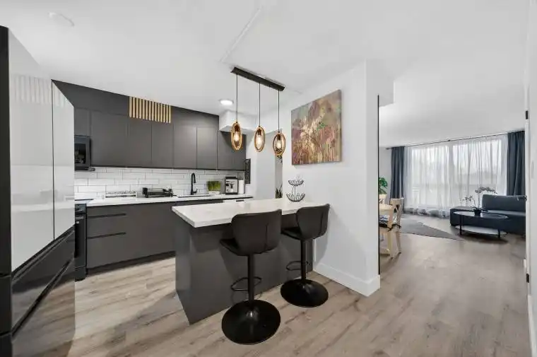 This completely renovated unit is the one you have been waiting for. Beautifully updated with thoughtful touches throughout. When you stepthrough the door, you will find the kitchen has been opened up providing a breakfast bar, Stone Counters, a hidden dishwasher, extra cabinets,all-in-one washer & dryer, built-in microwave and elegant light fixture. In the open concept living room/dining room there is a feature wall sureto capture your attention. The surprises don’t stop there…when you head upstairs, the show stopper is the ultra modern bathroom with alighted mirror and all the spa like jets in the shower. 3 Bedrooms include a spacious master bedroom with 2 other rooms that can be bedroomsor envision your office. There are lots more upgrades for you to see in this unit, including flooring, baseboards, lightening and more. On thisside of the building, you have breathtaking views of Lake Ontario from your balcony. The outdoor sky streets make this home feel like atownhouse. It comes with underground parking, and a large storage locker. There is also a pantry inside the unit. Feel at home with Bikestorage, community gardens and BBQ’s, covered basketball nets and a party room. A major plus is that the building is pet friendly! Close togolf, parks, trails, streams and just a minute to the Redhill and a few exits to the QEW or LINC. The New Confederation GO station is also just a few mins away for an easy commute.