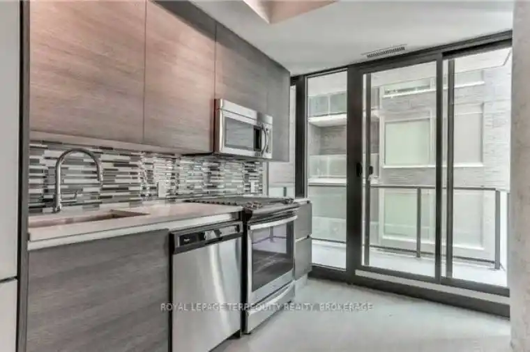 Stylish 1-Bedroom In Vibrant King West! Featuring 9 ft ceilings, hardwood floors throughout, and floor-to-ceiling windows that fill the space with natural light. Enjoy a modern European kitchen with a gas stove and sleek cabinetry, plus an ensuite washer/dryer for added convenience. The bedroom boasts custom built closet & stained glass sliding doors. Surrounded by some of the city’s best restaurants, cafes, and nightlife. Steps to King, Queen, and Bathurst streetcars with 24-hr TTC service.