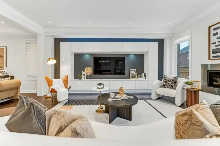 Stunning detached home with 4 ensuite bedrooms and a double car garage, ideally situated in a highly sought-after Aurora neighbourhood. Offering approximately 2,961 sq ft of well-designed living space, this home features 9 ft ceilings and hardwood flooring on the main level, complemented by coffered ceilings and pot lights throughout main floor, creating a bright and welcoming atmosphere. The family room serves as the heart of the home, showcasing a custom feature wall with an integrated media unit and ample built-in storage, anchored by a sleek gas fireplace – perfect for everyday family living and relaxed entertaining. The modern open-concept kitchen features a large centre island with breakfast bar, quartz countertops, undermount sink, full-height cabinetry, stainless steel appliances, elegant pendant lighting, and a contemporary tile backsplash. A sun-filled breakfast area with walk-out to the backyard enhances seamless indoor-outdoor living. The second floor offers four generously sized bedrooms, each with its own ensuite bathroom, along with a versatile office or sitting area ideal for work or study. The spacious primary retreat features a stylish accent wall, walk-in closet, and a well-appointed 5-piece ensuite. Enjoy a private, fully fenced backyard with a generous stone patio – ideal for outdoor dining, family gatherings, and summer enjoyment. A bright main-floor laundry room with utility sink, storage closet, and direct access to the garage adds everyday convenience. Conveniently located close to T&T Supermarket, shopping plaza, golf courses, GO Train, and Hwy 404. Within the highly regarded Dr. G.W. Williams Secondary School district (IB Program).