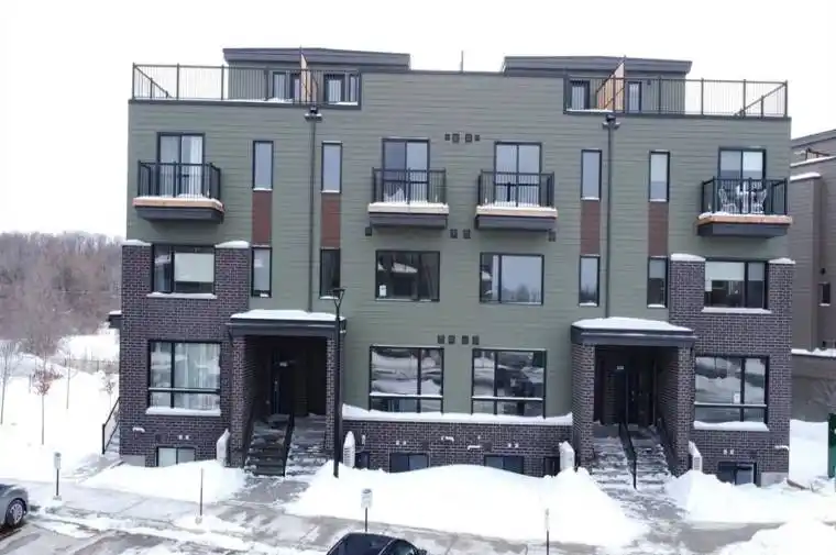 Experience modern living in this stunning 2 bed, 1.5 bath stacked home located in Wateridge’s master-planned community, just steps from the Ottawa River and a short drive to downtown. Surrounded by parks, trails, and top-tier amenities, this vibrant neighborhood offers the perfect blend of convenience and nature. The Britannia unit boasts a bright, open-concept layout with 9-foot ceilings on both levels, enhancing the spacious feel. The main level features sleek laminate flooring throughout and an upgraded floor plan that includes a powder room for added convenience. The modern kitchen is equipped with white cabinetry, quartz countertops, a stylish backsplash, and a breakfast bar overlooking the living and dining area ideal for entertaining. On the lower level, you’ll find two generously sized bedrooms with ample closet space. The full bathroom is beautifully designed with quartz countertops and under-mount sinks, adding a touch of luxury. This home also includes one outdoor parking space. Located just minutes from shopping, restaurants, grocery stores, parks, schools, public transportation, and sports clubs, this home offers modern comfort in an unbeatable location. Don’t miss out schedule your viewing today!