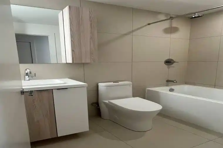 9′ celling, 2 bedrooms 2 bathrooms with warm and welcoming light. Wood finish cabinets. Quartz kitchen countertop & backsplash. Integrated luxury Miele kitchen appliances: fridge, cooktop, oven, dishwasher, concealed hood fan & microwave oven. 24/7 Concierge/Security. Amazing amenities to come: pet spa, gym w/ high performance equipment, cycling studio, yoga studio, wellness rm w/ soaking tub & msg bed, hot tub, cold plunge pool, dry sauna, wet steam rms, party rm w/ gourmet kitchen, theatre, game lounge, outdoor bbq lounge, etc, Steps to TTC, King west, Roy Thompson Hall, CN tower, Sky Dom , TIFF, PATH, Royer Alexandra Theatre etc.