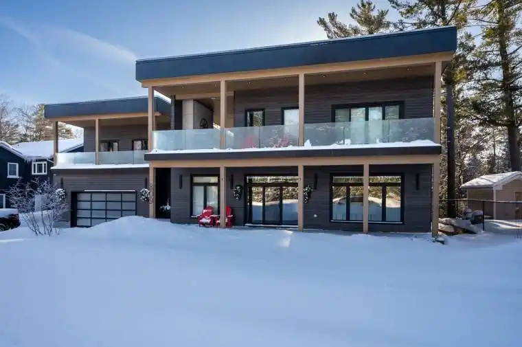 Just steps from the sandy shores of Allenwood Beach on beautiful Georgian Bay, Experience refined west coast living at its’ best complete with spectacular sunsets and water views in this extraordinary newer-built custom home with a 800sf legal apartment suite. Every detail of this exceptional fully finished 5,200 sf 5-bedroom, 7-bath masterpiece reflects thoughtful design, premium craftsmanship, and the perfect balance of modern luxury and natural tranquility. you’ll be captivated by the architectural elegance and resort-style outdoor living spaces featuring multiple decks with hot tub and gas fireplace, gourmet outdoor kitchen, and a professionally landscaped private backyard oasis. Inside, the impressive open-concept main level showcases soaring ceilings with panoramic windows which embrace its’ charming living room with wood-burning fireplace and dining area. The chefs kitchen is an entertainers dream, complete with custom cabinetry, Corian countertops, state-of-the-art appliances, large island for entertaining, coffee bar, and custom hidden pantry. main-floor primary suite, meanwhile the second-floor primary retreat boasts a spa-like ensuite, private balcony with hot tub, gas fireplace with breathtaking views of Georgian Bay. features include a wine bar, dedicated office, home gym, spacious family room, games room and living room with walkout of the lower level. The heated, insulated double garage with ample parking ensures both comfort and convenience. The self-contained legal apartment, finished to the same luxurious standard, an ideal space for extended family or premium rental income, with its own private yard. With easy access to the ski hills of Blue Mountain as well as all the amenities of Wasaga Beach, including dining, shopping, and entertainment, this residence offers the ultimate year-round luxury retreat where you can listen to the waves, watch spectacular sunsets over the sparkling waters of Georgian Bay and have the beach just a stones throw away.